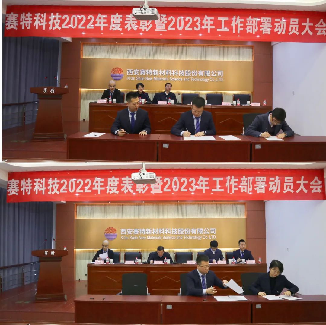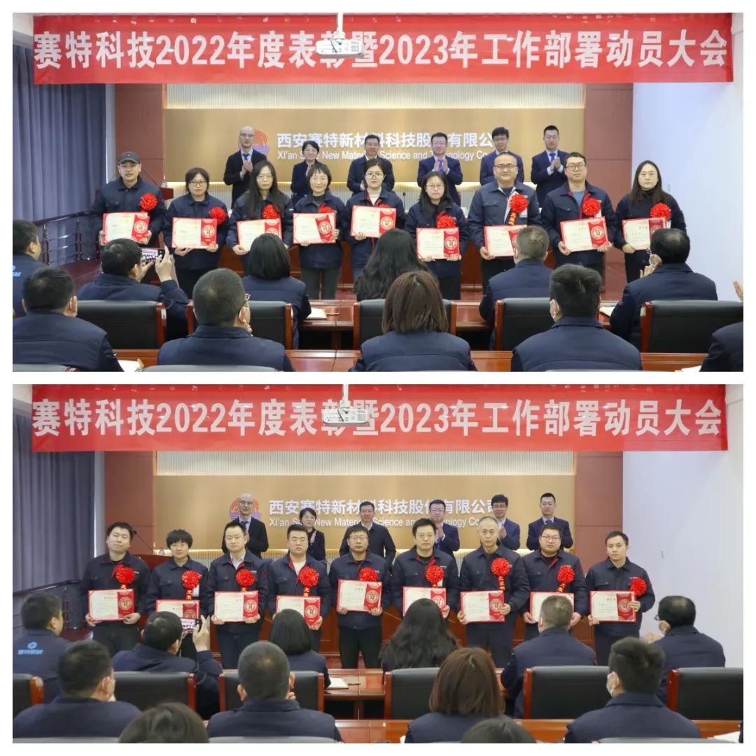 最后,杜明煥董事長做了總結講話,他對賽特公司2022年度的發(fā)展成績給予了高度肯定,對全體干部職工在過去一年里付出的辛勤勞動致以最誠摯的問候,對所有受表彰的先進集體和個人表示熱烈的祝賀。他指出,公司經(jīng)過多年的積累,基礎工作已經(jīng)取得長足的進步,干部隊伍得到了較大的發(fā)展,產(chǎn)品研發(fā)也取得了驕人的成績,時至當下,全體賽特人一定要咬定青山不放松,花大力氣釋放現(xiàn)有產(chǎn)能,提高產(chǎn)量,擴大銷量,大力推進渭北項目建設,盡快建成完整的產(chǎn)業(yè)鏈,以時不我待的精氣神堅決完成2023年各項指標任務。他強調,事業(yè)好不好,主要看干部,希望全體干部以高度的事業(yè)心、責任心,滿懷激情的主動投入到公司大發(fā)展的進程中,不負青春不負年華。他強調,賽特公司作為西北有色金屬研究院的公司,一定要時刻肩負國之大者,勇于扛起國家使命,真正的擔負起國家擔當,為我國稀有金屬材料產(chǎn)業(yè)貢獻力量。